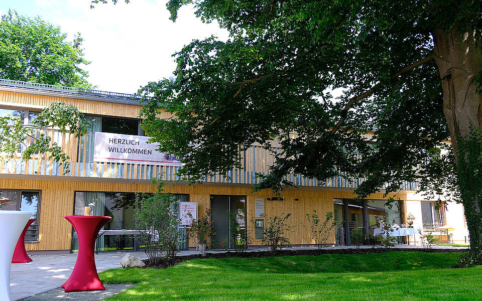 Im Sommer 2025 wurde unser neues Haus Pfarrgarten in Ried / Neuburg an der Donau eingeweiht. Hier erwartet Sie modernster Standart in ländlicher Umgebung und gleichzeitig ist die Innenstadt von Neuburg nur um die Ecke. Wohnen in Einzelzimmern mit barrierefreien Bädern auf zwei Etagen, mit Aufzug verbunden. Da ist von Selbstversorgung bis Vollverpflegung alles möglich. Jede Etage verfügt über freundliche Gemeinschaftsräume zum Kochen, Essen und für Freizeitaktivitäten. Der Bau wird von einer schönen Außenanlage eingerahmt. Dazu gehört ein Garten mit Hochbeeten und eine große Buche, die im Sommer viel Schatten spendet.